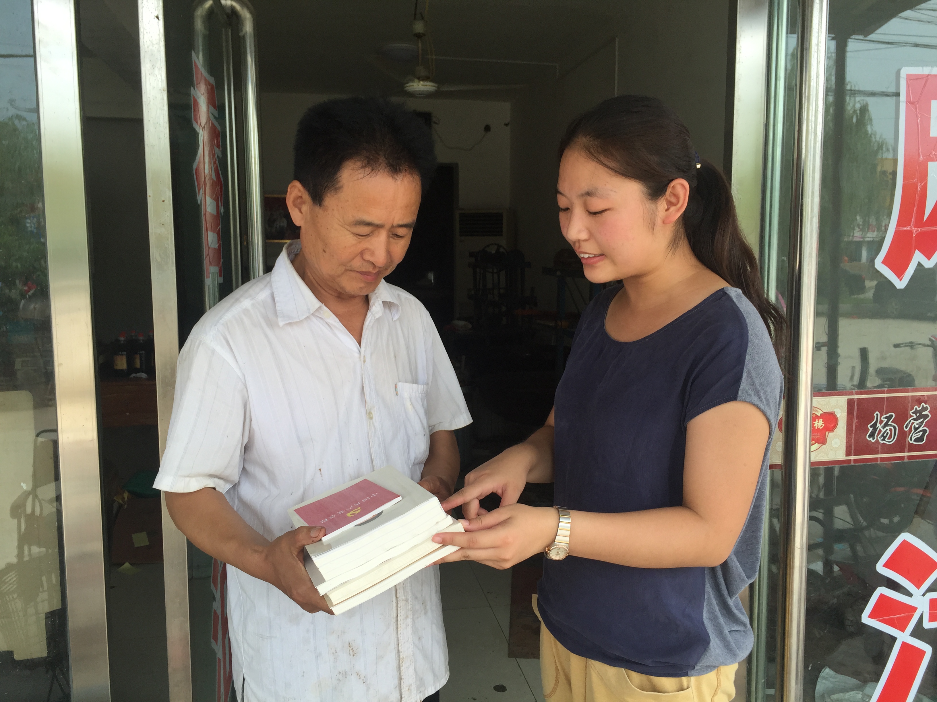 正妹av 大学生志愿者积极与杨营村村委会联系,一同为老党员们送去“两学一做”的学习材料,为年纪比较大的老党员,解读中国共产党党章,介绍近期“两学一做”学习教育开展的状况,解读习近平总书记“七一讲话”等重要文件。交流过程中,大学生志愿者们也注重向老党员们学习革命精神,注重倾听老党员对乡村发展的意见与建议,注重了解革命年代老一辈们对党的忠诚与认识,以达到“对话老党员,成长新青年”的目的。在对话老党员时,年轻党员们认真聆听老党员们讲述过去奋斗的故事,感受到了老党员们的无私的奉献精神。“谢谢你们还想着我们啊!我们虽然年纪大了,但是心里始终惦记着党啊,你们这又送放大镜又读文件的,我们该说些什么好呢!我们现在老了,干不动了!需要你们年轻一辈儿的人继续发扬艰苦奋斗的精神继续往前走,你看现在路也修好了,吃得也好了,住的也好了,相信在咱们党的领导下,咱们的生活一定会越来越好!”拥有40多年党龄的老党员杨文钦感慨地说。