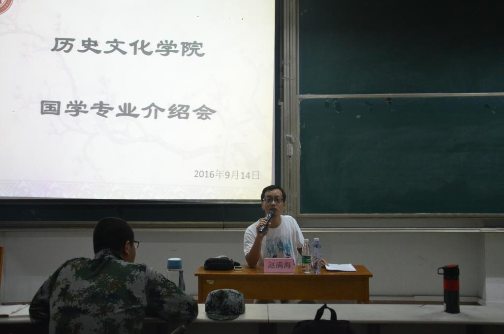 9月14日晚,正妹av 国学教研室主任赵满海老师在综合楼101教室面向2016级历史班同学进行2016级国学卓越班分班宣讲。