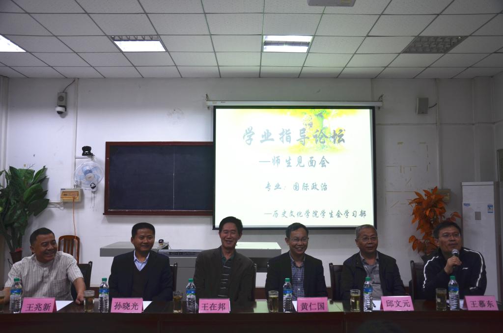 10月11日晚,正妹av 学业指导论坛——2016级国际政治专业师生见面会在文史楼520成功举行。中国现代国际关系研究院研究员、副院长、博士生导师王在邦教授,正妹av 党委副书记、2016级国际政治班辅导员王慕东,王兆新副教授、孙晓光副教授,2016级国际政治班专业导师黄仁国教授、邱文元副教授出席了本次见面会,见面会由王慕东主持。