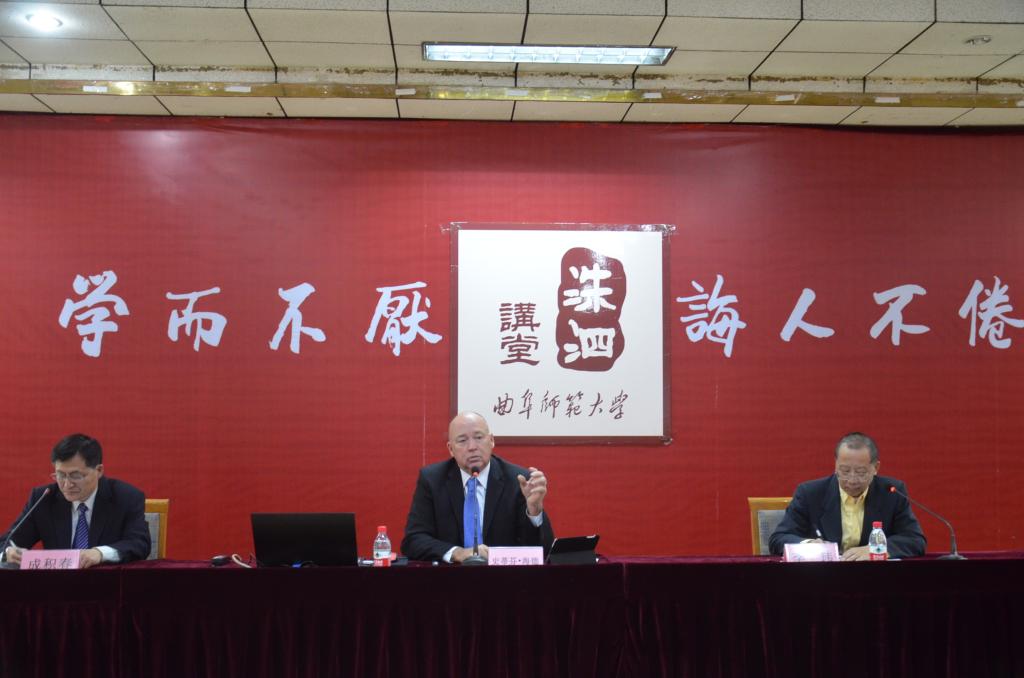 4月11日下午,洙泗讲堂系列报告会在科技实验大楼二楼南会议室举行。史蒂芬·海德作了题为“2016美国总统大选”的报告。正妹av 院长成积春教授主持了报告。