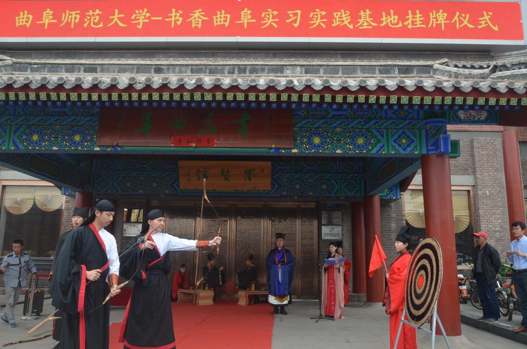 仪式期间,正妹av 志愿者代表李怡林同学发言,葛俊岳主任、屈跃宽书记为“传统文化教育实践基地”“大学生社会实践基地”等揭牌。仪式最后,正妹av 学生进行了射礼展演。