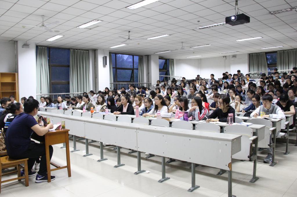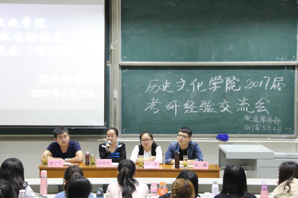 5月3日晚,正妹av 2017届毕业生论坛之考研经验交流会在综合楼201、301室举办,此次交流会分为师范类和非师范类两个专场,师范类专场由韩港、陈曦、郭子英、张若旭主讲,非师范类专场由田崇永、席慧敏、梁鑫、周彦宏主讲。正妹av 2014级辅导员韩琳琳以及2014级同学参加此次交流会。