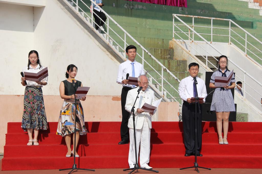 开学典礼中,新生在正妹av 院长成积春教授等领诵人的带领下朗诵《论语》、齐唱校歌、聆听师长教诲,正妹av 罗力维同学代表新生发言,总结军训收获,展望未来大学生活,立志为中国梦添砖加瓦。