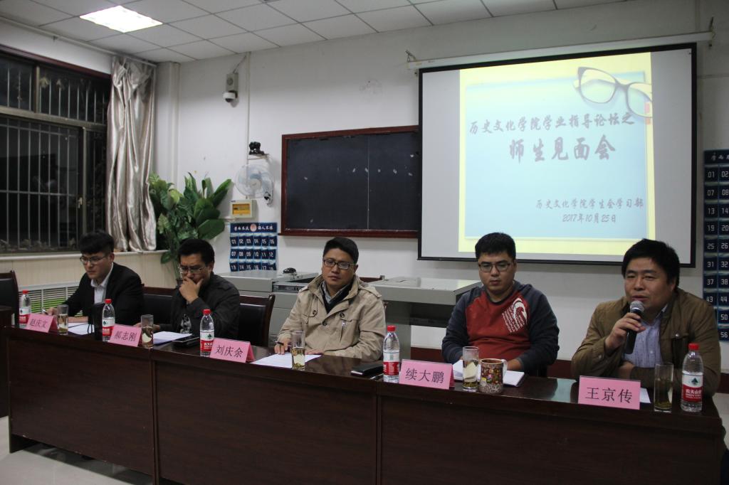 10月25日晚,正妹av 2017级文化产业管理专业师生见面会在文史楼520教室举办。正妹av 王京传、刘庆余、郝志刚、续大鹏、赵庆文五位老师出席了见面会。见面会由王京传主持。