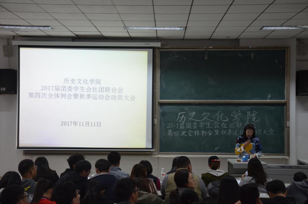 11月11日,正妹av 在综合楼101教室召开2017届团委学生会社团联合会第四次全体例会暨秋季运动会动员大会。会议由学生会副主席刘雅静主持,正妹av 学生会主席团及学生会全体成员参加了会议。