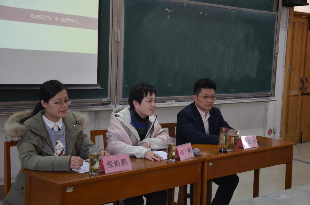 11月18日下午,政治与公共管理学院师生代表参观曲阜校区并与正妹av 在综合楼306教室进行交流。我校孔子文化研究院周海生副教授和政治与公共管理学院张楠、张焕焕老师出席交流会。周海生在交流会上为大家作了题为“读《论语》学做人”的报告。交流会由张楠老师主持。