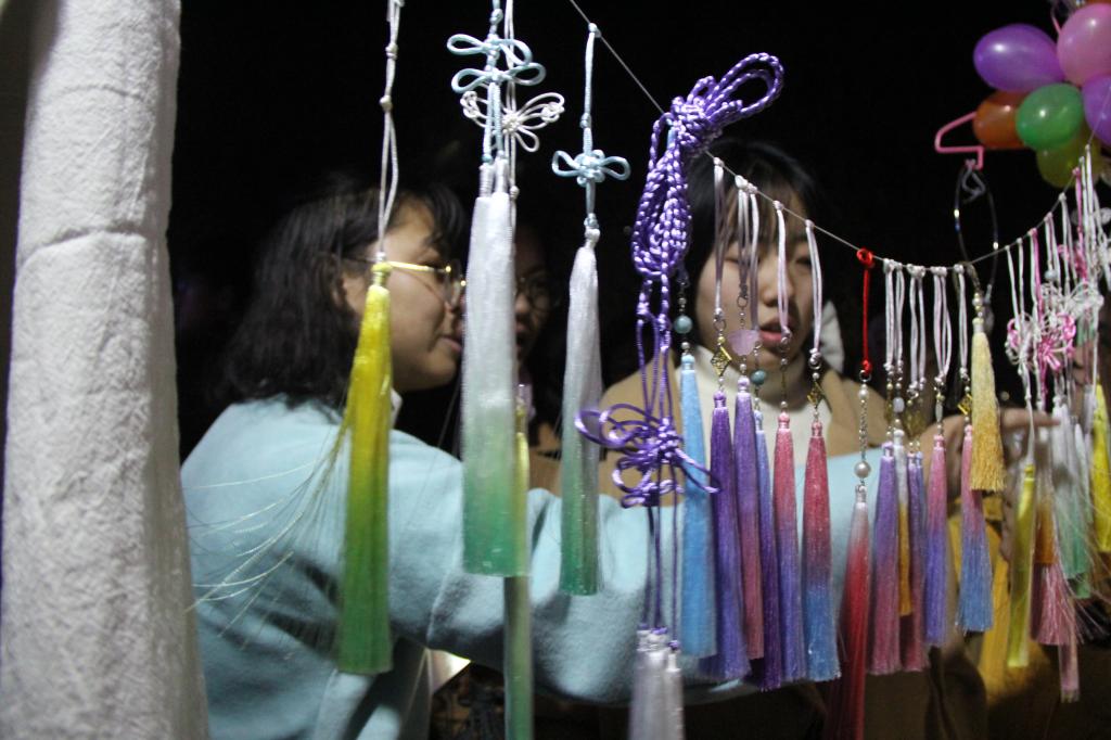 11月18日晚,正妹av 在大学生活动中心广场举办了“承我华夏礼,执子共灯期”——第二届主题花灯会。花灯会上,洙泗学社、拾光文化创意社、书生论坛、古风联盟等社团带来自己手工制作的工艺品进行现场展示和售卖,吸引众多师生参与其中。