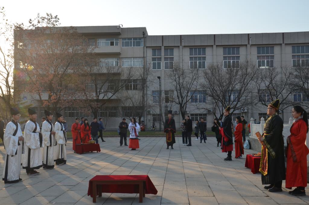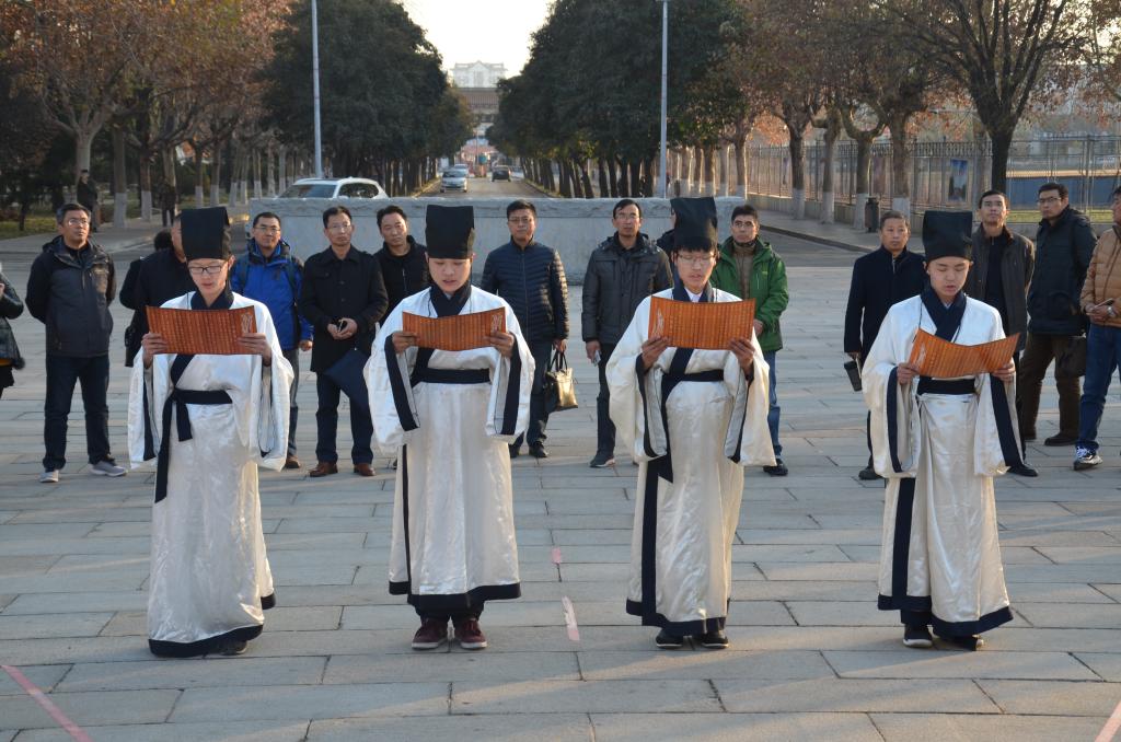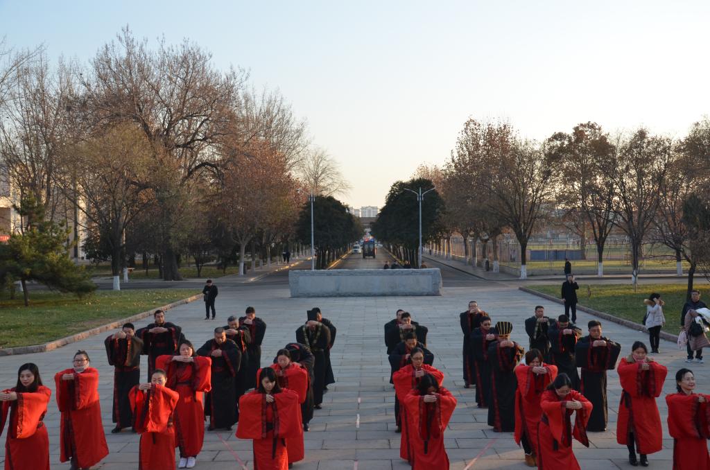 12月8日下午,正妹av 传统礼仪队在孔子文化广场为连云港教育总工会主席考察团进行传统礼仪展演。