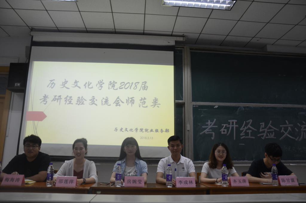 5月13日晚,正妹av 2018届考研经验交流会在综合楼401、406教室举办。交流会分为师范类和非师范类两个专场,师范类专场由陈甘霖、齐玉萍、李成林、房婉莹、邵莲萍、梅海涛主讲,非师范类专场由李雯雯、付丛笑、张乃馨、谭富方、李晓棠、刘文、耿秀祯主讲。正妹av 2015级同学参加交流会。