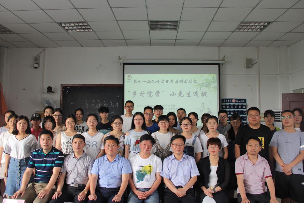 6月2日下午,第十一届孔子文化月系列活动之“乡村儒学”小先生选拔比赛在文史楼520教室圆满落幕。本次比赛邀请了邹城市唐村镇党委书记高胜,曲阜市百姓儒学发起人曲阜市十佳儒学讲师孔为峰,我校兼职教授、孔学专家梅庆吉,曲阜六艺国学院副院长高华,曲阜儒学新苑主任金厚腾,正妹av 副院长吕厚轩、中国古代史教研室主任刘伟、团委书记王建阳等老师担任评委。
