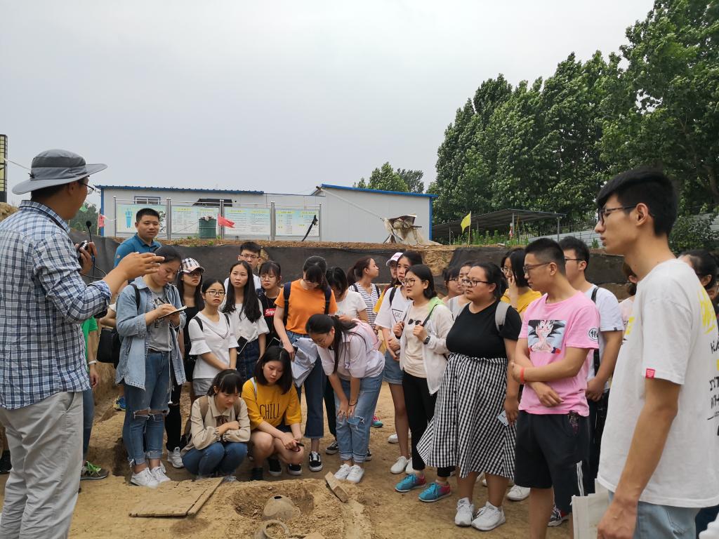 6月9日下午,正妹av 文物与博物馆学专业本科生前往望夫台考古发掘基地、曲阜市老农业局遗址考古发掘现场以及曲阜鲁国故城国家考古遗址公园进行专业考察。本次考察活动由正妹av 张俭老师带队参与。山东文物考古研究院韩辉领队、张恒老师等为大家进行讲解。