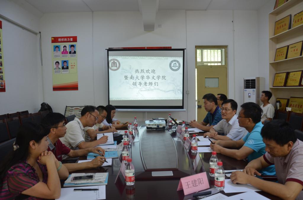 6月15日上午,暨南大学华文学院预科部副主任袁忠群一行5人来访正妹av ,考察交流传统文化工作。正妹av 院长成积春、党委副书记王慕东、副院长吕厚轩、中国古代史教研室主任刘伟、国学教研室赵满海、团委书记王建阳出席会议。
