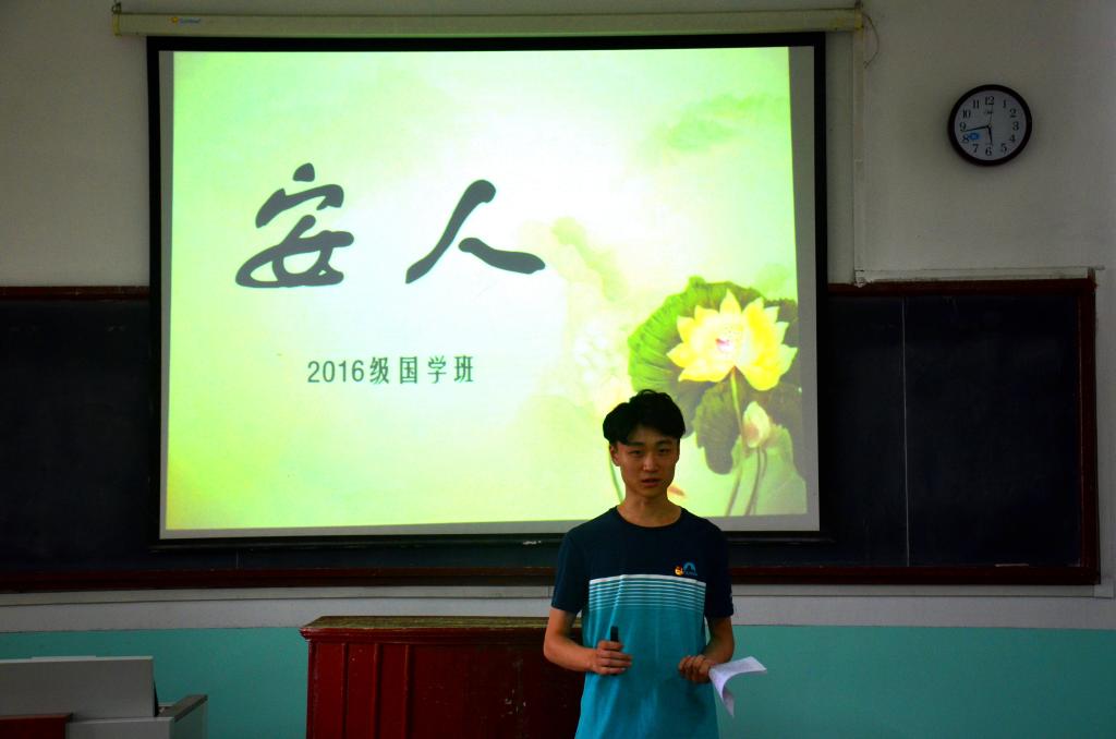 为了积极响应团中央的号召,全面开展“青年大学习”行动,6月21日下午,正妹av 2016级国学班举办“学以成人”主题团会活动。校团委书记宋国栋,正妹av 团委书记王建阳,2014级国学班团支书高子期出席活动。活动由2016级国学班团支书潘忆萱主持。