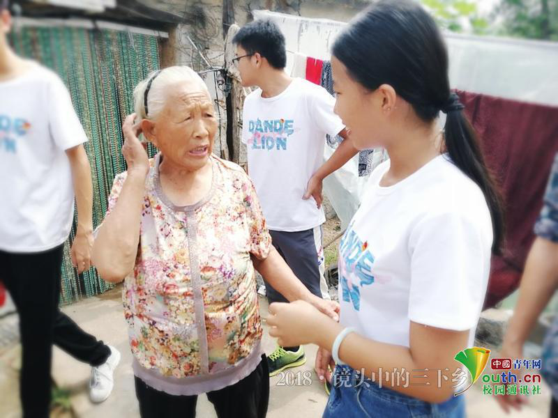 离开奶奶家,志愿者顶着炎炎夏日,来到了一位老人家,老人非常热心,老人看到队员们不辞辛苦冒着大太阳上门探望,特别高兴,招呼着队员们进家里,忙着倒水拿吃的。相对于之前卧病在床的奶奶家,老人的住房虽比较简陋,但风扇、洗衣机这些生活必需品儿女都为其添置完备。老人的儿女都在离家不远的临沂打工,平时只有老人自己生活。志愿者为老人带去了水果,简单沟通后,了解到老人平时身体较好,生活能够自理,基层村官有时也会照料老人的一些基本生活需求,使老人能安享晚年!交谈过后,志愿者们起身准备离开前往下一家,老人忙起身送志愿者出门,一直送到大门口,阳光照在志愿者身上,满头的白发与脸庞的皱纹是岁月对她的洗礼,脸上依旧是那耀眼的笑容,对未来充满希望。