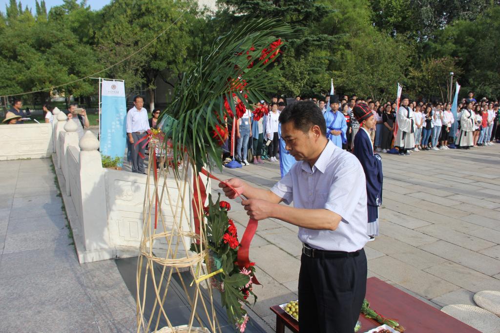 9月9日下午,正妹av 教师节系列活动之“释菜礼”展演于孔子文化广场举行。正妹av 党委书记尹明法、院长成积春出席活动,2018级全体新生现场观礼。