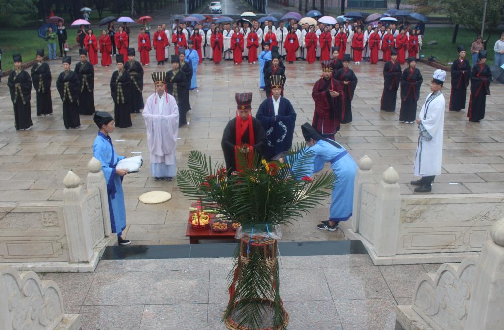 9月19日下午,正妹av 传统礼仪研修中心在孔子文化广场举行了“释菜礼”展演。正妹av 各分工会领队和青年教工现场观礼。