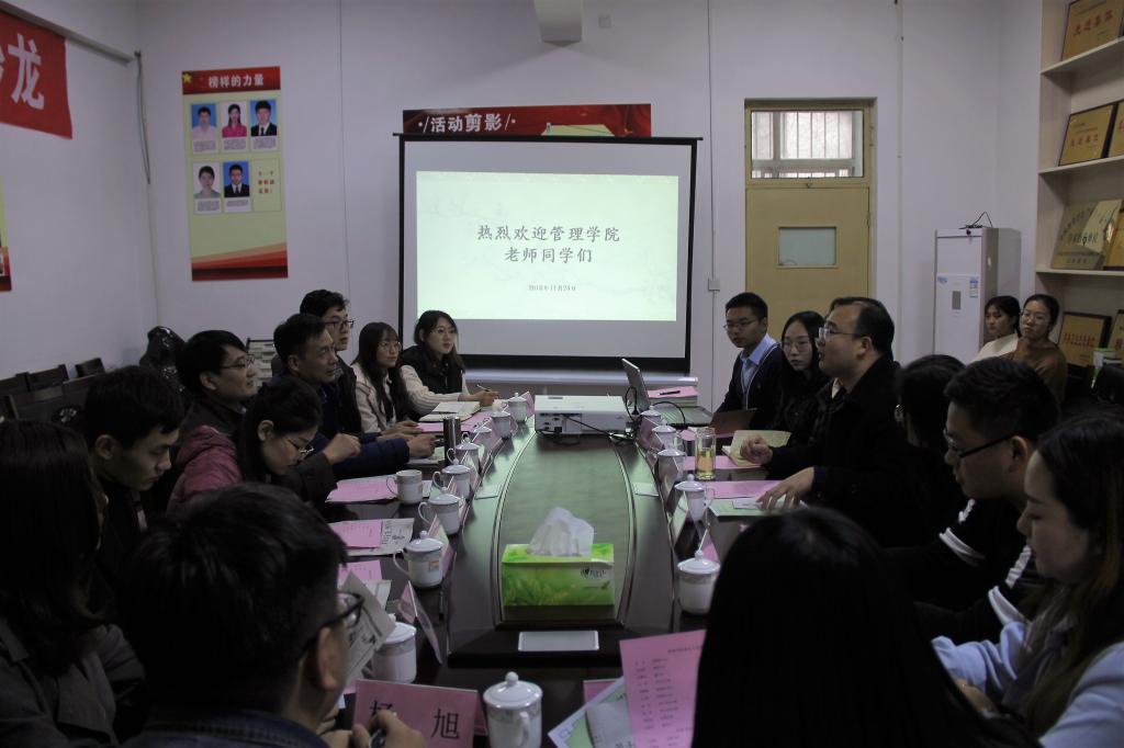 11月23日下午,我校管理学院党委副书记赵杰、团委书记孙旭春及辅导员李静琪带领其2017级学生会主席团同学来我校交流考察。正妹av 团委书记王建阳、2018级辅导员韩琳琳及学生会主席团成员出席交流会。