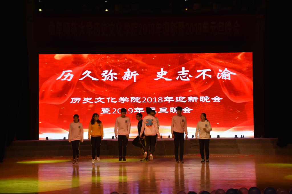 12月23日晚,正妹av “历久弥新,史志不渝”2018年迎新暨2019年元旦晚会在大学生活动中心礼堂成功举办,全院师生欢聚一堂。