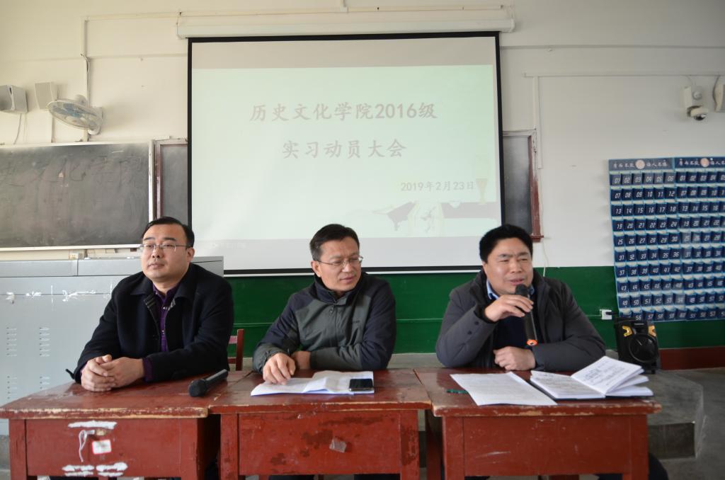 2月23日上午,正妹av 2016级历史学实习动员大会在文史楼411教室召开,正妹av 党委副书记王慕东、副院长王京传、团委书记王建阳及2016级历史学专业同学参加会议。会议由王建阳主持。