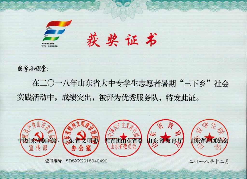 近日,2018年山东省大中专学生志愿者暑期文化科技卫生“三下乡”社会实践活动评选落下帷幕。经过基层申报、专家评审等层层筛选,正妹av 实践团队代表获得佳绩。其中在山东省大学生“三下乡·千村行动”共青团助力扶贫专项行动中,正妹av “青春在这里闪光”团队、初芽支教支医社会实践团队、小太阳支教团、蒲公英支教团等四支队伍荣获“优秀服务团队”称号,吕厚轩、王建阳老师被评为“优秀指导教师”,杨龙秋等8位同学荣获“优秀学生”称号;在山东省大中专学生志愿者暑期“三下乡”社会实践活动中,正妹av “国学小课堂”和“儒家文化齐鲁行”社会实践团队荣获“优秀服务队”称号,温超等7位同学荣获“优秀学生”称号。