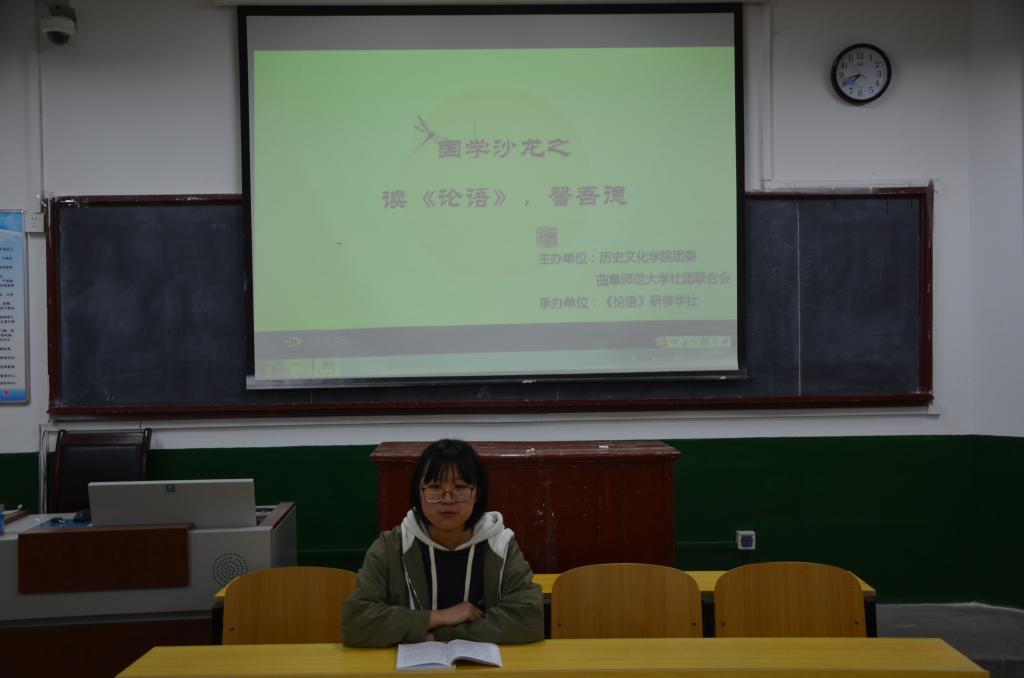 4月19日晚,由正妹av 《论语》研修学社承办的第十一届孔子文化月系列活动之国学沙龙——“读《论语》, 馨吾德”在文史楼309教室举行。《论语》研修学社成员和2017级、2018级国学班部分同学参加活动,活动由徐鹏斐主持。