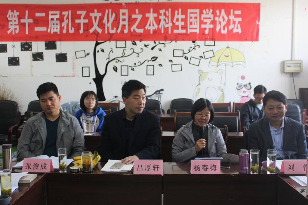 4月20日上午,由正妹av 《论语》研修学社承办的第十二届孔子文化月系列活动之本科生国学论坛在文史楼520教室举行。《论语》研修学社成员、2015级和2018级国学班部分同学参加论坛,论坛由郑双主持,邀请吕厚轩、张俊成、杨春梅、刘伟老师出席。