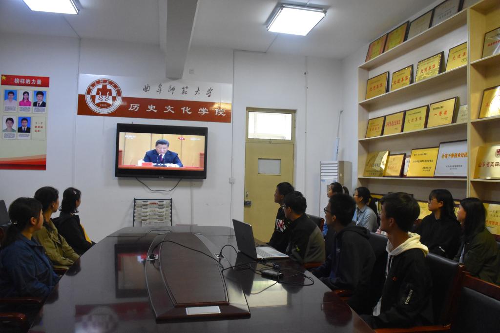 大会上,习近平总书记发表重要讲话,全面深刻的阐释了五四运动的里程碑意义,指出中国青年始终是实现中华民族伟大复兴的先锋力量并深情寄语当代青年。老师和同学们全神贯注的观看直播视频,深切感受大会的热烈氛围,深刻领会习近平总书记重要讲话的核心要义与精神实质。