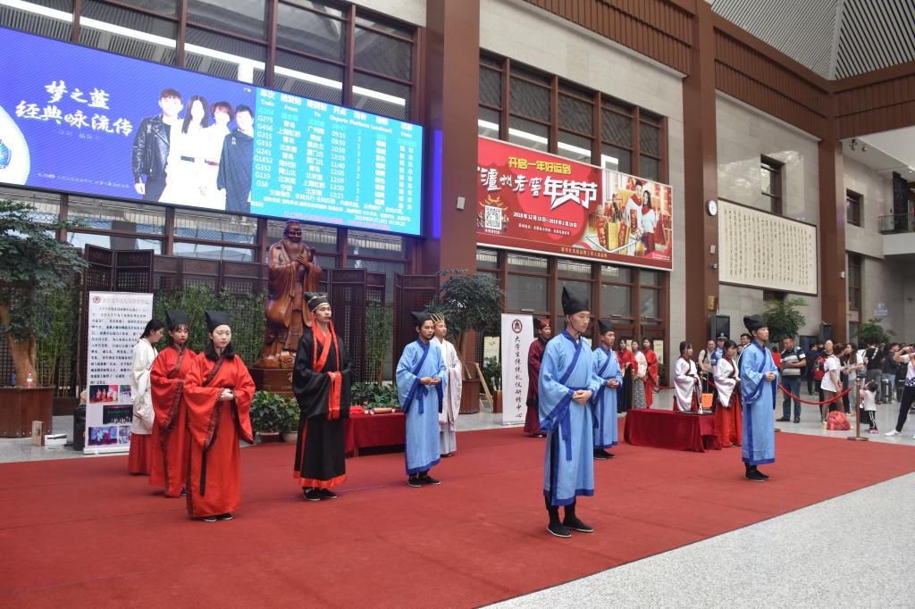 大学生传统礼仪研修中心走出校园,在曲阜东站进行的传统礼仪展演,向旅客们传达了优秀的儒家传统精神文化,展现了大学生积极向上的精神面貌,产生了良好的社会影响,对传统文化的传播与发展起到了重要作用。
