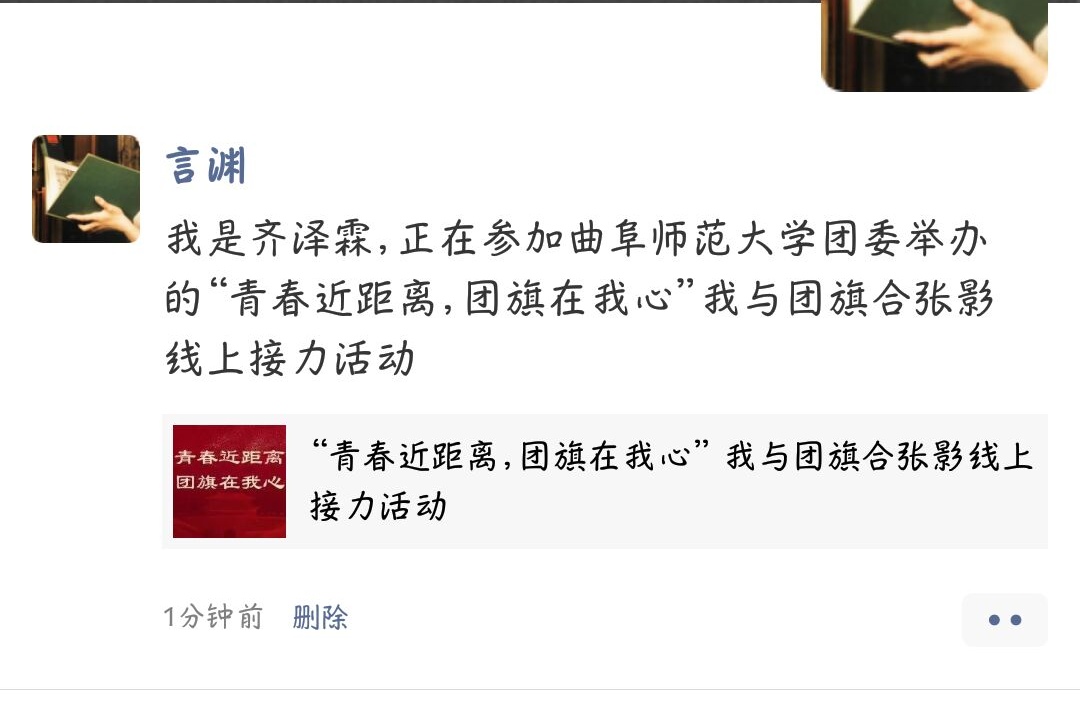 为纪念五四运动一百周年,正妹av 积极响应学校号召,由组织部作出示范,举办“青春近距离,团旗在我心”我与团旗合张影线上接力活动。 活动分为三个部分:各团支部组织和团旗合影并记录背后的祝福语,利用网络平台进行宣传,号召各团支部及参与团员进行线上宣传。 活动的举办,增强了团员荣誉感,提高了团员敬团、爱团的意识,提升了团组织的凝聚力和向心力。