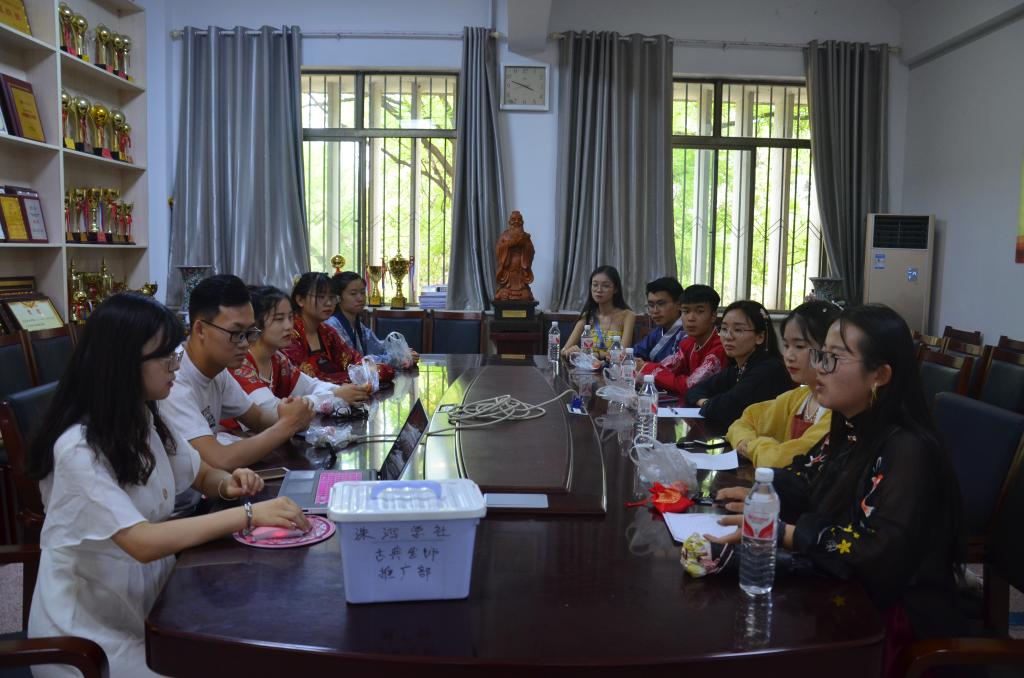 6月7日下午,正妹av 在文史楼204举行正妹av 洙泗学社与日照校区猗兰传统文化学社社团经验交流会。会议由正妹av 社团联合会主席王天啸主持。 会议上,正妹av 洙泗学社社长闫文静通过PPT向猗兰传统文化学社代表介绍了洙泗学社基本情况以及“国学沙龙”、“孔子文化月”、“成人礼”等社团特色活动。随后,猗兰传统文化学社社长杨璐璐介绍本年度猗兰社团举办的“中日韩”东方文化交流会、“花朝节”、“传统文化知识竞赛”等活动。 在本次交流中,双方就社团发展中遇到的问题和心得作了深入探讨。双方成员准备充足,各抒己见,互相学习了对方社团的闪光点。双方还就如何加强两个社团之间的联动、增强校区间的友好交流、共同承办跨校区的文化交流活动进行了深入探讨。 交流活动为双方社团搭建了一个相互交流学习的平台,增加合作机会,增进彼此友谊,为传统文化类社团的发展打下了良好基础。