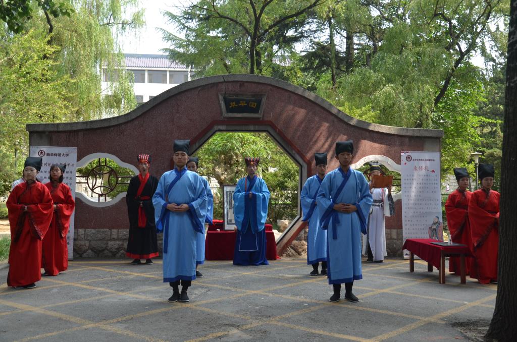 6月27日上午,正妹av 传统礼仪研修中心为来我校交流访问的香港创知中学师生举行了“束脩礼”展演。
