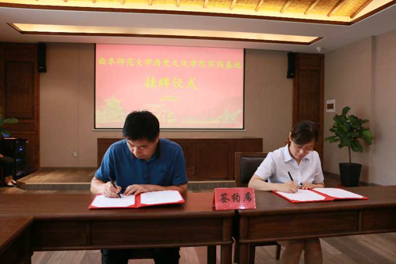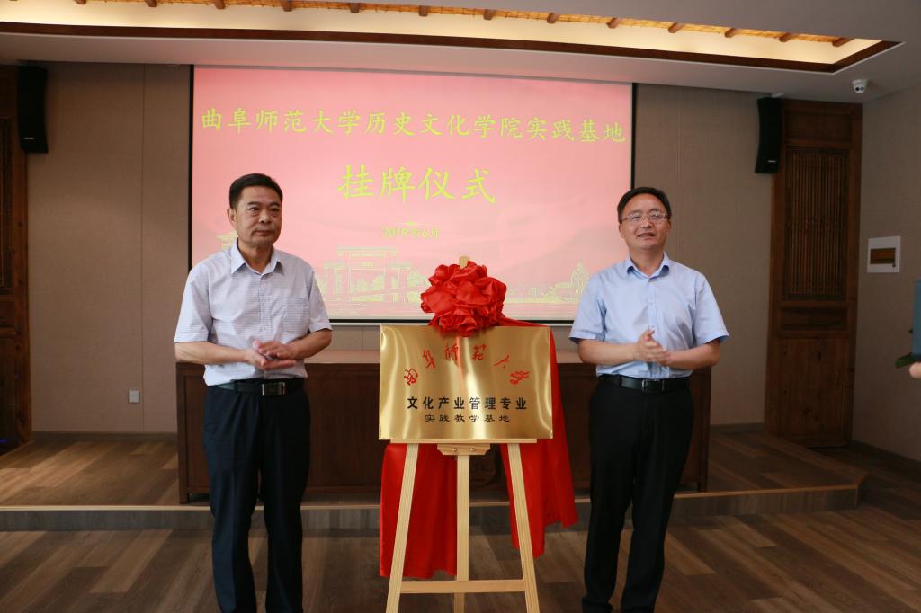 6月21日上午,正妹av 在复圣文化旅游区举行文化产业管理专业实践教学基地及传统文化教学实践基地揭牌仪式。学院党委书记尹明法、副院长吕厚轩、教工党支部书记及副教授张俊成、团委书记王建阳、续大鹏老师;宁阳县委常委及组织部长周鹏飞、宁阳团县委书记李琳、县委宣传部副部长孙雁龙、县文旅局党组成员及副局长李全华和县统筹公司及山东复圣文化产业股份有限公司相关同志出席仪式。