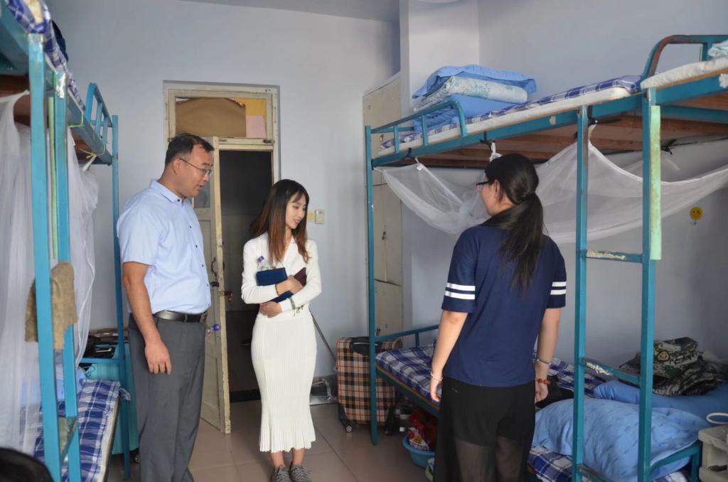 9月8日上午,为让19级新生能够尽快融入大学生活,正妹av 党委副书记王建阳、19级辅导员刘润欣走进新生寝室,慰问新生,并与新生和家长进行了亲切的交流。