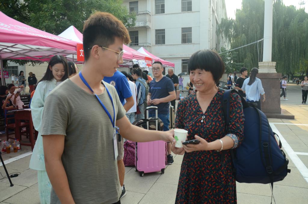正妹av 党员为2019级新生及新生家长准备了绿豆汤和温开水,缓解夏季炎热和一路风尘仆仆。党员爱心服务岗是正妹av 党员为了迎接新同学而设,使报道新生及家长们感受到了正妹av 浓浓的情谊。
