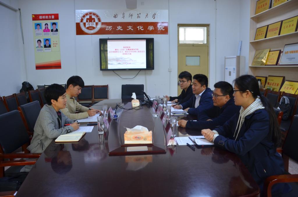 10月9日,腾讯(山东)企鹅新媒体学院总经理郭燕文女士、校企合作经理王成忠先生来正妹av 交流产教融合工作。正妹av 副院长王京传、文化产业管理教研室主任郝志刚、团委韩琳琳、青年教师赵庆文参加活动。