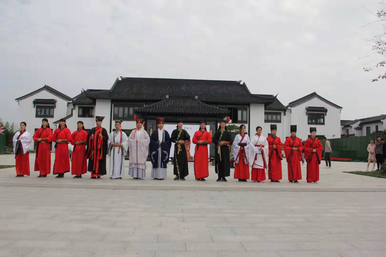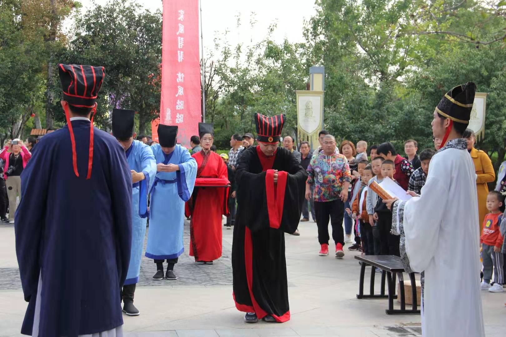 10月20日上午,正妹av 传统礼仪研修中心前往泰安复圣公园举行射礼和束脩礼的展演。