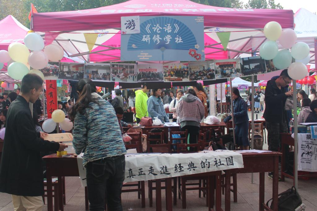 10月27日,我校在大学生活动中心门前广场举行2019年百团大战,学院洙泗学社、《论语》研修学社、史院学社、文博学社、拾光文化创意社、辩论社、普通话协会、羽毛球协会积极参加,各显神通。
