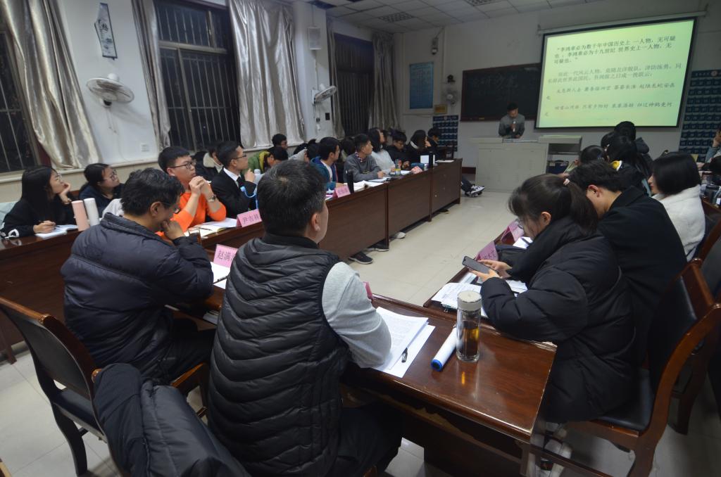 12月8日晚,正妹av 《论语》研修学社承办的国学沙龙系列活动之晚清民国学人论著活动在文史楼520教室成功举办。学院副院长吕厚轩、赵满海老师出席活动,胡杰文、卢官一、史修鼎、尹吉祥、龙子涵同学参与活动并发表读书报告。活动由正妹av 胡杰文同学主持。