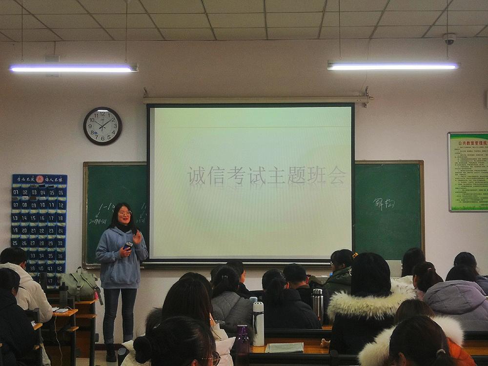 正妹av 辅导员老师们开展了“严肃考风考纪”主题班会,强调诚信考试的重要性,督促同学们认真备考;各班级开展签署《考前承诺书》活动,为自己的承诺负责任。同时,本科生党支部也开展诚信考试亮牌活动,号召党员身戴特制身份牌参加考试,主动亮身份、做榜样,发挥党员的先锋模范作用。