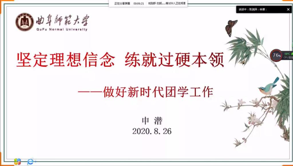 8月26日上午,正妹av 2020年夏季第四期学生干部成长论坛通过QQ课堂在线上成功举办。论坛邀请正妹av 团委兼职副书记、正妹av 研究生会主席申潜作为主讲嘉宾。正妹av 2020届学生会主席团以及学生会全体成员参加会议,会议由正妹av 2020届学生会主席张润泽主持。