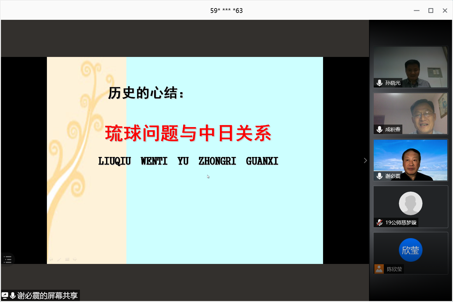 10月2日晚,2020年第3期洙泗讲堂通过腾讯会议在线上举行。谢必震教授为正妹av 师生做了题为“历史的心结:琉球问题和中日关系”的报告。报告由正妹av 成积春院长主持。