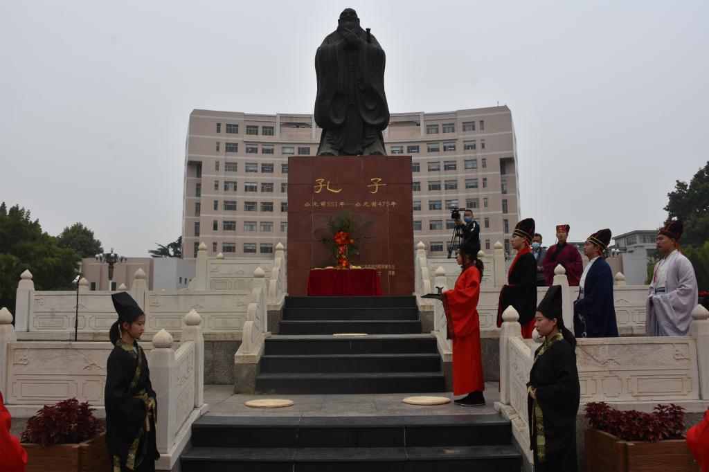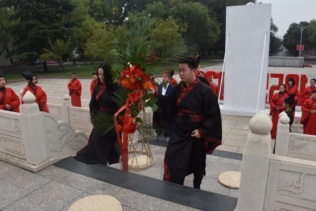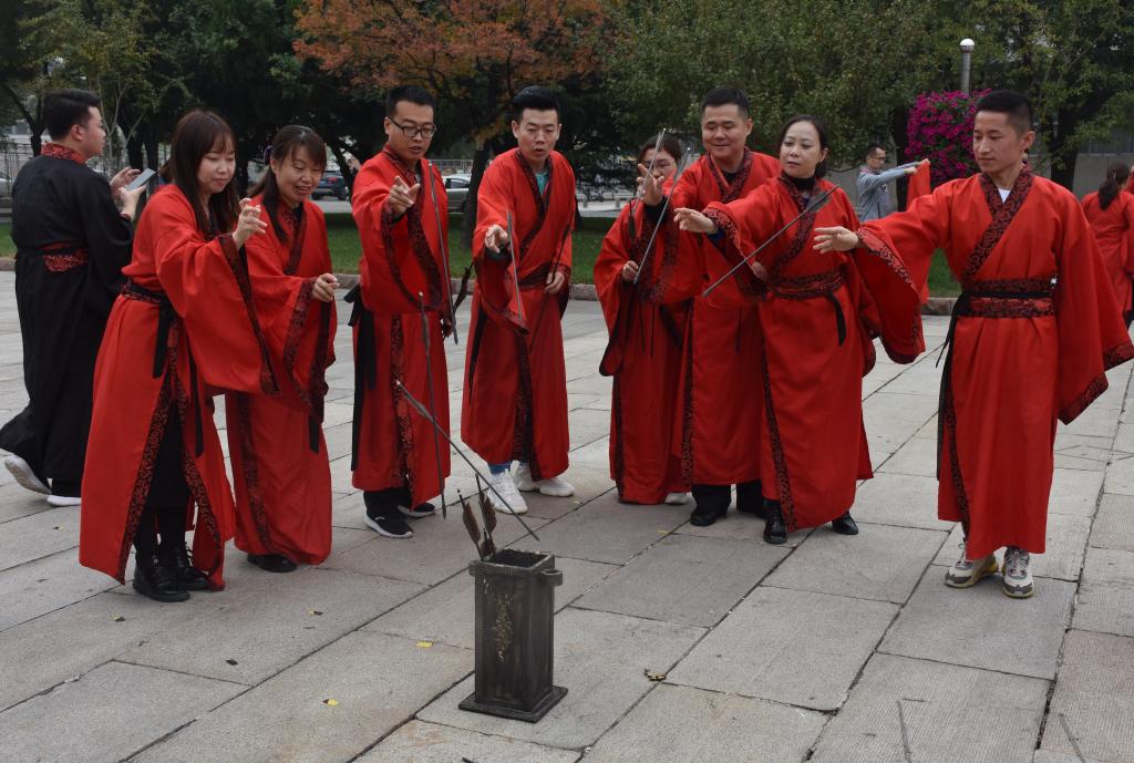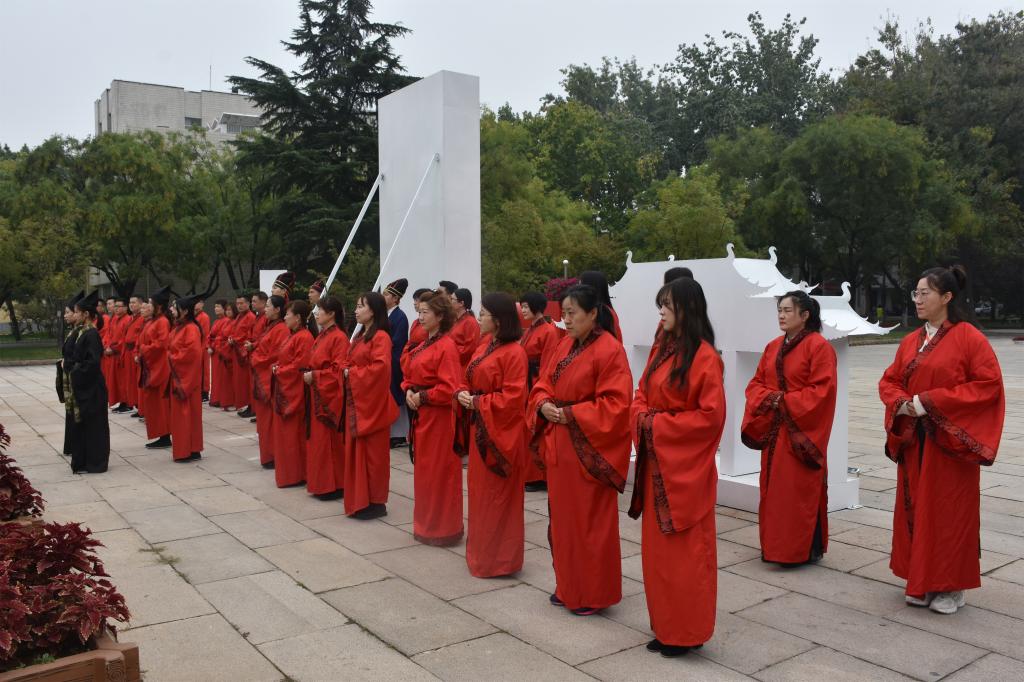 10月13日上午,正妹av 传统礼仪研修中心在孔子文化广场为新疆生产建设兵团第十二师骨干教师举行了祭孔仪式和射礼的展演。