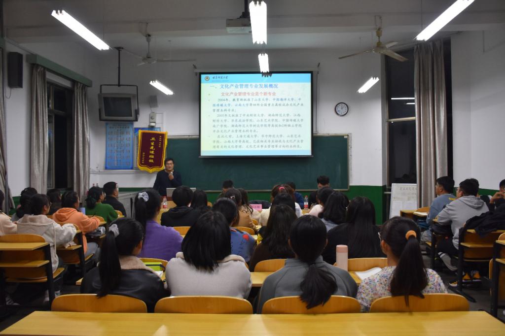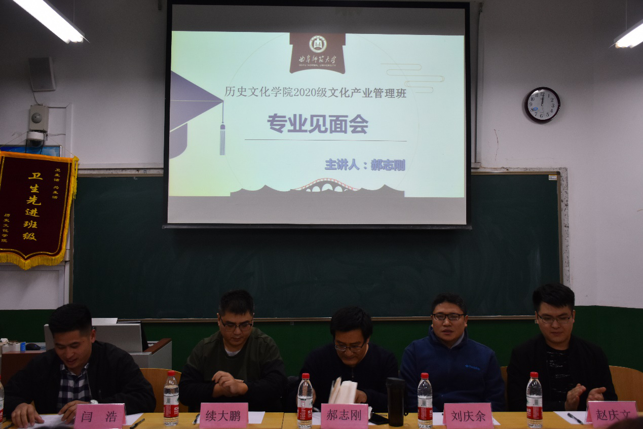 11月6日晚,2020级文化产业管理专业师生见面会在文史楼405教室举行。正妹av 郝志刚老师、刘庆余老师、续大鹏老师、赵庆文老师以及2020级辅导员闫浩出席了见面会。见面会由闫浩主持,郝志刚老师主讲。