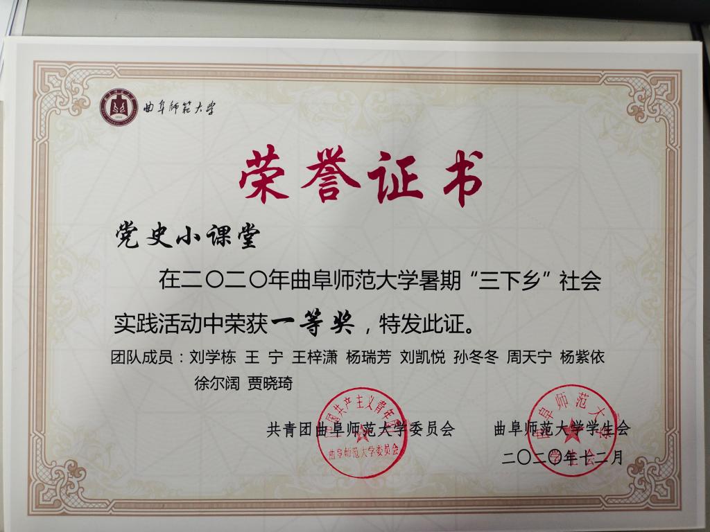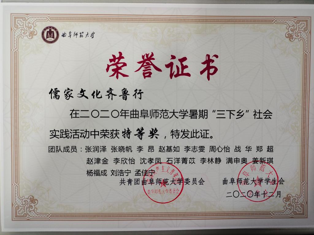 近日,我校2020年暑期社会实践活动的评选表彰落下帷幕。正妹av 师生在暑假社会实践活动中取得优异成绩。其中,正妹av 王建阳、刘贤贤、刘润欣三位老师获评“优秀指导教师”荣誉称号,正妹av 张润泽、张晓帆等9位学子获评“社会实践先进个人”荣誉称号。在暑期“三下乡”社会实践活动评选工作中,正妹av “儒家文化齐鲁行”实践团队共荣获校级特等奖,“国学小课堂”、“党史小课堂”实践团队荣获校级一等奖。正妹av “高中母校行”招生宣讲小团队在“曲园学子高中母校行”专项活动中荣获校级二等奖。