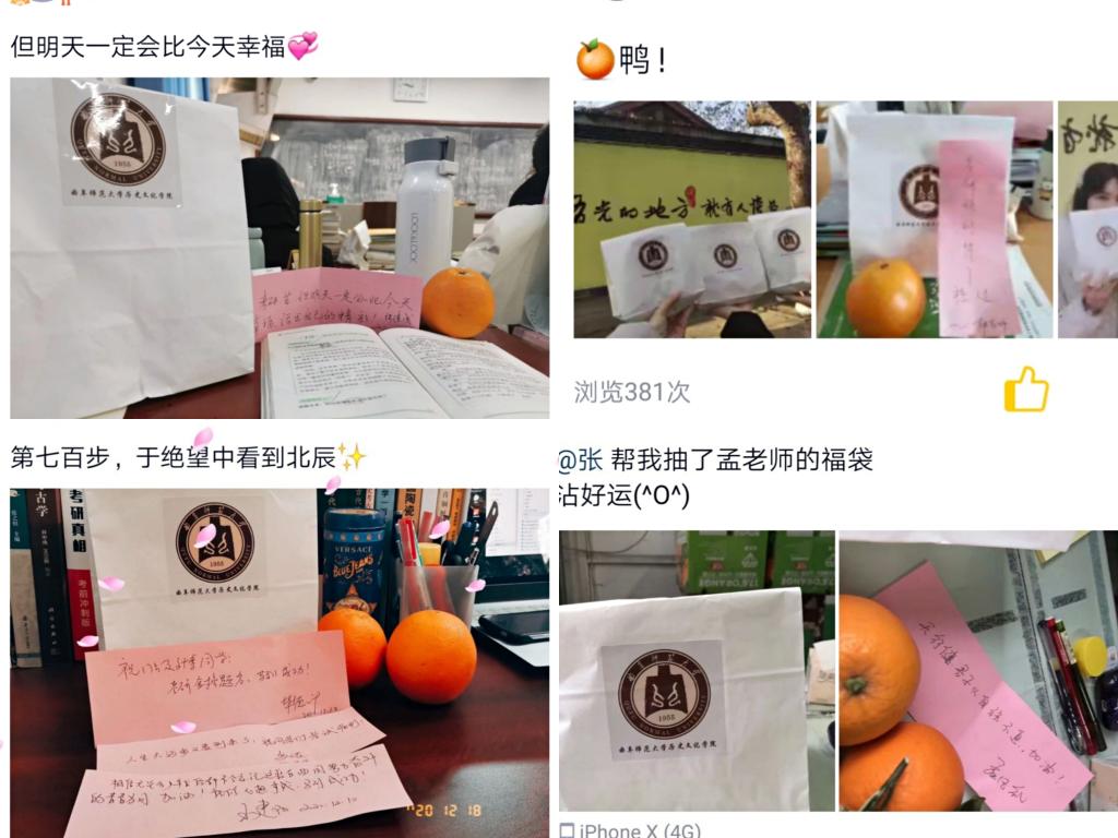 穿梭书海勤为舟,苦中作乐亦心欢。学院老师为考研学子送去温暖与祝福,让同学们感受到学院的关怀与期望,增强考研学子备战的信心与勇气,帮助同学们以最好的精神状态迎接考试。祝愿每一位考研学子旗开得胜、金榜题名!