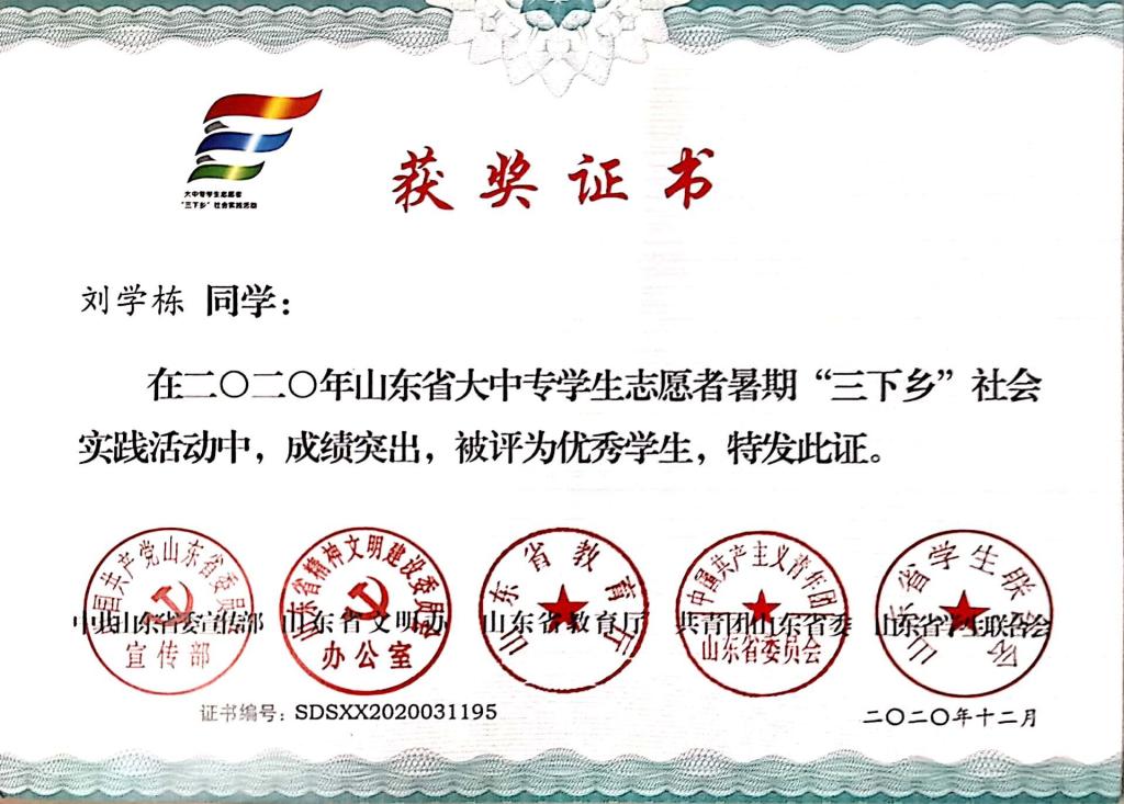 近日,2020年山东省大中专学生志愿者暑期“三下乡”社会实践活动评选结束。