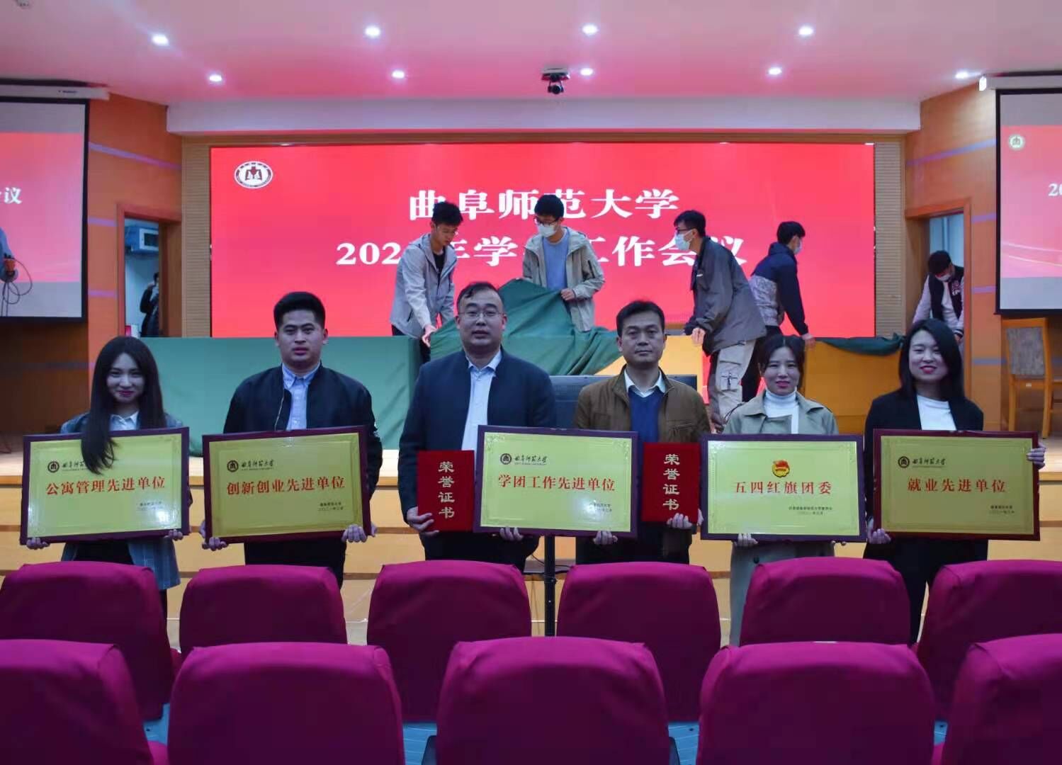 3月29日下午,正妹av 2021年学生工作会议在孔子会堂召开。正妹av 2020年度学团工作喜获多项表彰。其中,学院集体被评为学团工作先进单位、五四红旗团委、就业工作先进单位、创新创业先进单位、公寓管理先进单位,王建阳、孙锋两位老师获评辅导员年度人物,石璐老师获评优秀辅导员。