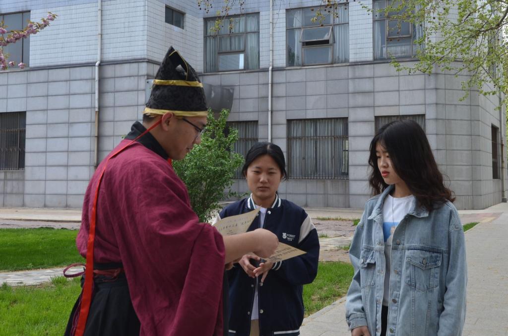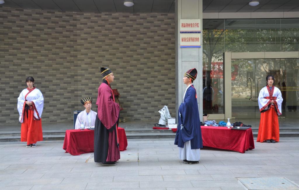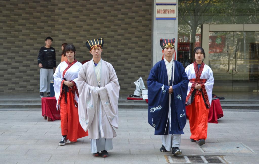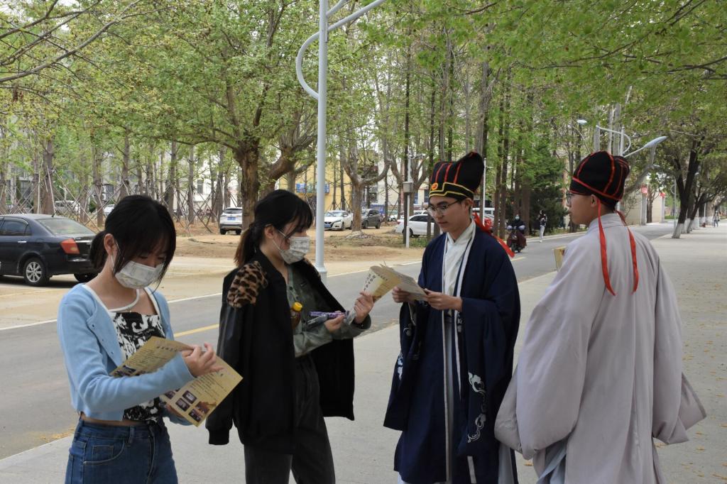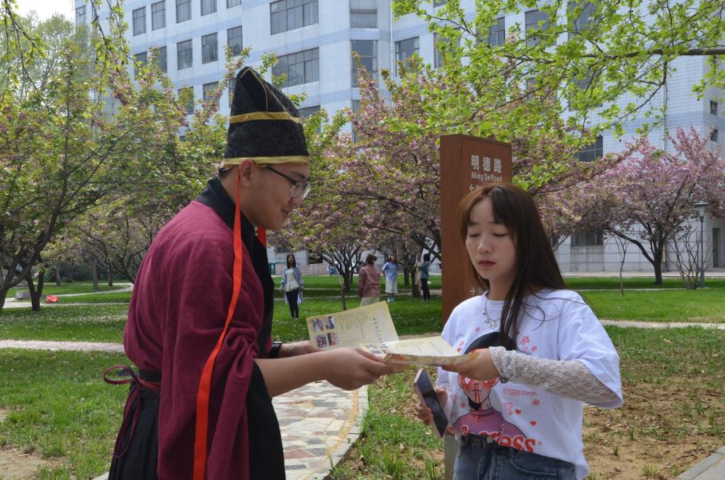 进行展演的同时,志愿者们身着各式汉服在校园各处向来往的同学介绍第十三届“孔子文化月”系列活动,吸引了大批同学们的关注和参与。此次招募活动,为十三届“孔子文化月”系列活动的举办注入了新鲜的血液,为接下来开展的系列活动奠定了良好的基础。