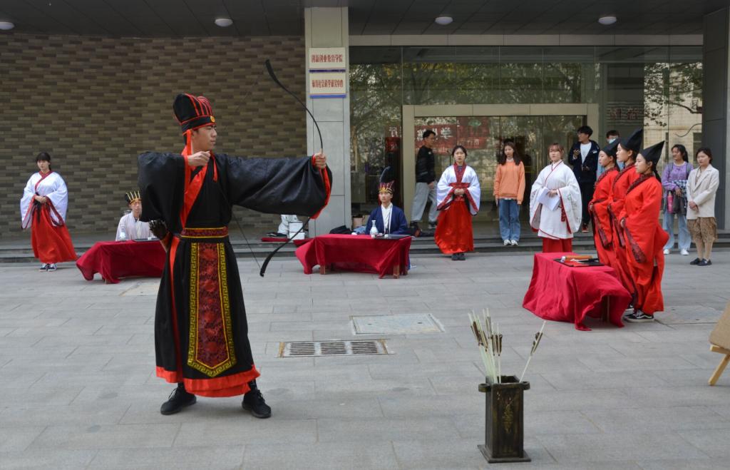 4月10日下午至4月11日上午,在“孔子文化月”拉开帷幕之际,正妹av 大学生传统礼仪研修中心在大学生活动中心广场前,面向全校招募第十三届“孔子文化月”孔子文化使者,并在现场举行射礼和祭孔礼的礼仪展演活动。