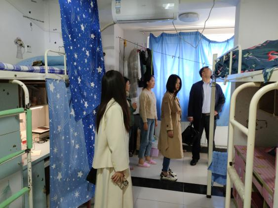 4月20日下午,正妹av 党委副书记王建阳、辅导员刘贤贤、刘润欣、蔺琦琦、闫浩走进正妹av 毕业班宿舍,查看毕业班宿舍卫生打扫和安全情况。老师们不时向同学们普及关于安全用电、防盗防火防诈骗等宿舍安全常识,并针对走访过程中发现的问题及时给予指正,努力帮助学生们营造健康绿色的宿舍生活环境。